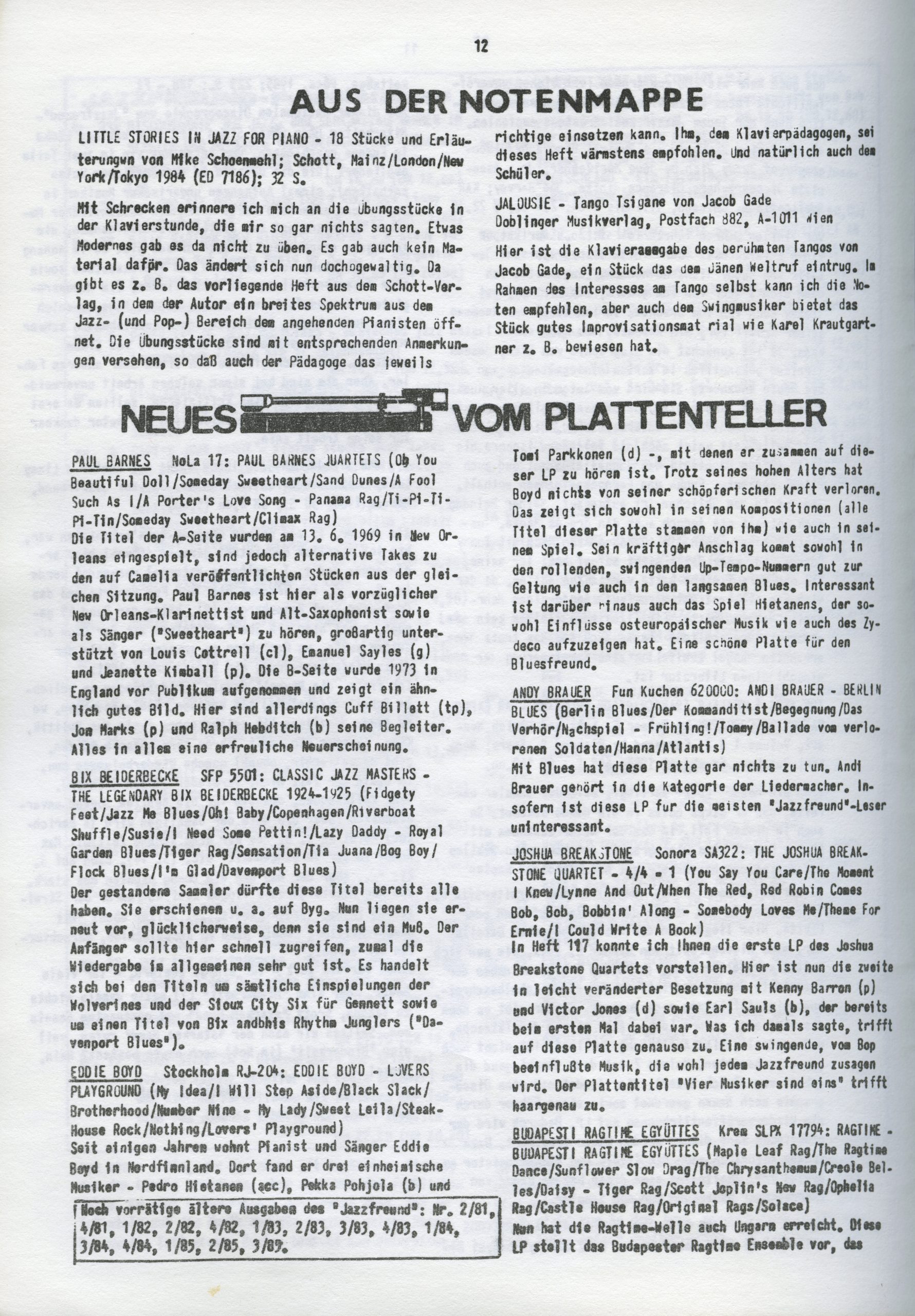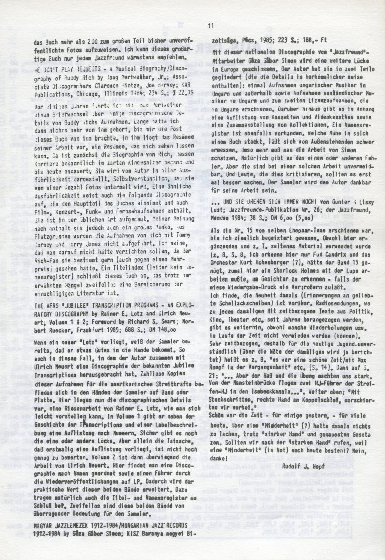 Zeitschrift: Der Jazzfreund